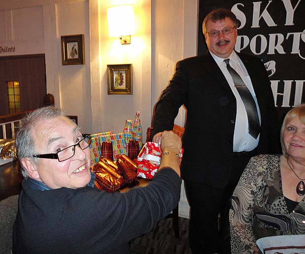 Bill receiving his raffle prize from Simon