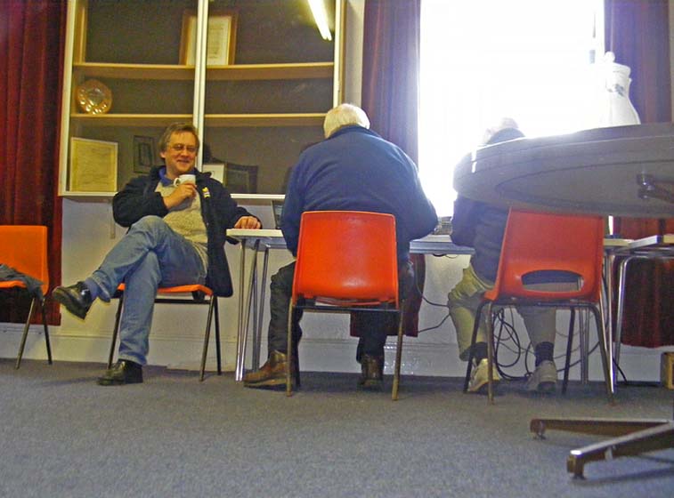 Richard G8NDD enjoying a cuppa with Neil G4OAR logging and Vic G4UDR operating