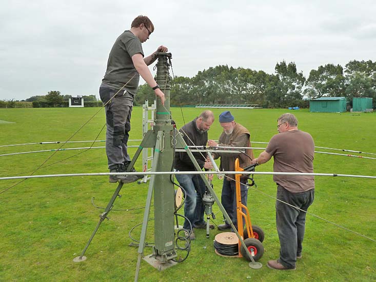 Preparing the first mast for the rotator and club beam